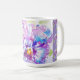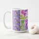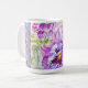 Taza de Latte floral de lirios púrpura pintada a mano. Un glorioso diseño floral de acuarela. Diseñado a partir de mis pinturas originales de acuarela, que pinté de mi propio jardín de flores.