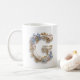 Esta taza de café presenta una letra inicial ornamentada 'G' en estilo barroco y es apta para una princesa. Sería un regalo encantador para una dama de honor, o un regalo para el Día de la Madre o cumpleaños.