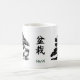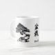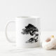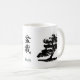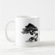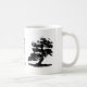Dos diversos bonsais en blanco y negro, uno en cada lado de la taza se separaron por los caracteres de kanji para los "bonsais".