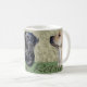 Todas las variedades tricolores del labrador retriever popular se ofrecen en esta taza con nombre de la raza y el fondo del camoflage.