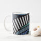 Esta taza ofrece un pedazo creado originalmente para apoyar "la iniciativa de la hora de la tierra" llevada a cabo a través del globo. Es dinámica y armoniosa, evocadora del movimiento y de las mareas del mar. Rendido imponentemente en varios tonos de la turquesa y ciánico, usted no encontrará este bolso en cualquier parte sino aquí. Este pedazo está también disponible como impresión.