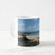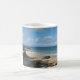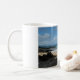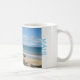 Goce de Maui con cada sorbo. Taza del café con leche mostrada con una foto magnífica de la impresión de Maui.