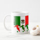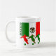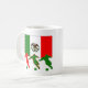 Juego de tres jugadores de fútbol delante de la bandera mexicana. El nombre de país México está en el lado