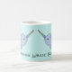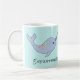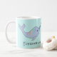 Cada lado tiene un narwhal lindo con un cuerno y los puntos del arco iris. "Todo ballena sea autorización" se envuelve alrededor de la taza.