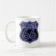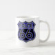Taza con los escudos de neón azules de la ruta 66