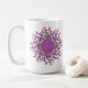 El Buddhism y la yoga inspiraron diseño de la taza con símbolo de OM (aum) en el damasco de la mandala impreso en un lado y Namaste sánscrito en el otro lado.