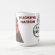 Una taza blanca clásica que ofrece el logotipo del club del castaño de Indias, el gallo del castaño de Indias de Joe Shumaker y la "nación americanos originales del castaño de Indias".