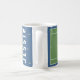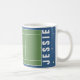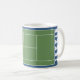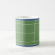 Taza de café de tenis creativa con arte de cancha y pelotas de tenis. Para personalizar, edite el texto para agregar el nombre de su jugador de tenis, entrenador o amante del deporte favorito.
