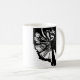 Taza de cerámica blanca que ofrece las ilustraciones de Jon Ott, representando a uces par de socios de baile de salón de baile como se sacuden elegante a través del piso en desgaste fino de la tarde. Las ilustraciones originales fueron hechas usando marcadores blancos y negros de la pintura.