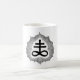 Goce de su bebida de la opción con el solo negro clásico en la taza blanca adornada Sigil del azufre de Gilmore blanco de uno de los reyes magos.