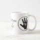 ¡Muestre a sus compañeros de trabajo qué mano usted favorece con esta taza blanca llamativa que exhibe el lema, el logotipo y el Web site de TotLH!