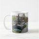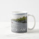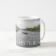 Una fotografía hermosa de barcos en un canal en Amsterdam en Holanda imprimió en una taza del recuerdo.