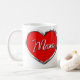 Un corazón texturizado, rojo con la "mamá" en letras brillantes del cromo.