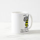 Una taza con una abeja representada en el frente. Las palabras debajo de la abeja dicen, la "Abeja-ing un cristiano hace a Jesús orgulloso.