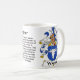 Escudo de la familia de Wagner incluyendo el origen y el significado del nombre de Wagner en una taza de cerámica. Tenemos 1000's de español, de alemán, de húngaro, el inglés y más escudos (escudo de armas). ¿Tenemos su escudo? ¡En toda la probabilidad hacemos!! Para más información envíenos por correo electrónico en heraldry505@hotmail.com si no tenemos su capa del brazo en Zazzle que nos placeremos añadirlo en ningún recargo. Ninguno de estos escudos se pueden utilizar en cualquier producto de la taza y del stein de Zazzle.