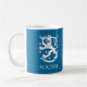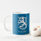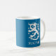 Taza azul marino hermosa con el texto de Finlandia/SUOMI en blanco y el león finlandés. El diseño doble así que la imagen se pueden considerar de ambos lados de la taza. Esto es un icono histórico Finlandia de simbolización y se ha utilizado en monedas, sellos, banderas, y otros artículos del interés nacional.