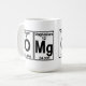 Elementos oxígeno de la química de OMG y taza de café del magnesio O-MG