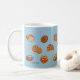 Taza con diseño alegre del dibujo del pan. El fondo es adaptable. Usted puede elegir su color preferido. Esta taza de café con 17 diversos dibujos originales del pan y de los pasteles aclarará su mañana y tarde. Hace un gran regalo para sí mismo u otros para cualquier ocasión.
