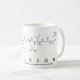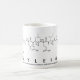 Kayleigh deletreó hacia fuera en aminoácidos como K A Y L E-I G H (histidina de la glicocola de la isoleucina del ácido glutámico de la leucina de la tirosina de la alanina de la lisina) en una taza para el científico en usted.
