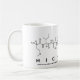Micaela deletreó hacia fuera en aminoácidos como M I C H A E L A (alanina de la leucina del ácido glutámico de la alanina de la histidina de la cisteína de la isoleucina de la metionina) en una taza para el científico en usted.