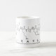 Mikayla deletreó hacia fuera en aminoácidos como M I K A Y L A (alanina de la leucina de la tirosina de la alanina de la lisina de la isoleucina de la metionina) en una taza para el científico en usted.
