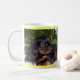 Un perro de aguas negro y del moreno precioso de juguete inglés honra el frente y la parte posterior de esta taza de café, special porque el rey Charles english Toy es una raza difícil a encontrar en cualquier mercancía del regalo.