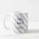 Taza elegante con monograma y rayas grises para novia y novio