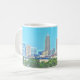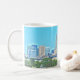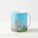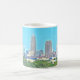 El horizonte clásico de la orilla del lago de Cleveland, Ohio se ofrece en la taza de cerámica robusta. La fotografía del efecto de la pintura añade un tacto brillante a la opinión icónica sobre la taza. Gran idea para los que quieren dar únicamente un regalo de Cleveland.