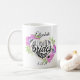Taza personalizada de la oferta de la dama de honor que ofrece ilustraciones florales alrededor de un falso corazón del efecto metalizado de oro haciendo estallar la pregunta