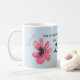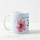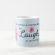 Esta taza azul bonita con las flores rosadas caprichosas ofrece usted va escritura del chica del libro de proverbios: "La visten en fuerza y dignidad. Ella se ríe de los días para venir." Personalice con su nombre, o deje ese espacio en blanco del campo si usted prefiere. Grande para cualquier mujer fuerte en su vida, si madre, esposa, hija o amigo.