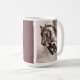 Las imágenes de la génesis y de Malibu en sepia vienen juntas en esta taza atractiva del artista, Bev Harrison de Lafayette, Colorado.
