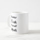 Las citas son una fuente extrema de inspiración, motivación y placer. Estando de tamaño compacto, hacen adentro leída una vida rápida de hoy perfecta. Si usted alimenta a algo positivo cada mañana en su mente entonces sigue habiendo su jornada completa ser positiva y llena de alegría. Esta taza le dará sensación positiva mientras que bebe el café. "Nunca piénsese débil."