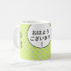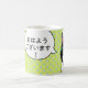Este gatito lindo dice "gozaimasu del ohayou" (buena mañana) en japonés. El otro kanji leyó simplemente "té". ¡Perfeccione para el amigo en su lista que prefiera té sobre el café!