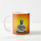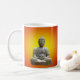 Un Buda sereno en la meditación contra un fondo del amarillo y del naranja.
