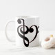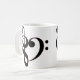 Los Clefs musicales asaltan características que un corazón formó por un clef agudo y un clef bajo en negro resumió en rojo.