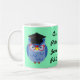 Esta taza linda de la graduación del PhD ofrece un búho azul que lleva un tablero del mortero (gorra de la graduación) y los vidrios. Lleva el título y la calificación del graduado y puede ser personalizada con cualquier nombre. El color de fondo y el estilo de fuente pueden también ser modificados para requisitos particulares.