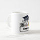 Taza del gatito de la graduación. Usted puede corregir el nombre y el año usando la fuente/el color/el estilo del cambio de cuadro del modificar para requisitos particulares para añadir sus los propios tacto.