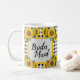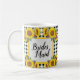 Sorprende a tus damas de honor con esta Taza Personalizada para Damas de Honor que presenta un patrón atemporal de gingham negro y girasoles amarillos brillantes. Un lado muestra la palabra "Dama de honor" mientras que el otro incluye un área de escritura personalizable para agregar su nombre. Ya sea que la uses como una propuesta de dama de honor, un favor de la fiesta de despedida de soltera o un regalo para la despedida de soltera, esta encantadora taza es una forma sincera de decir gracias.