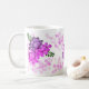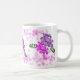 Taza de la novedad con rosa y diseño floral pintado entonado púrpura.