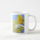Los girasoles azules y amarillos en la taza blanca "la brisa en el amanecer tienen secretos para decirle; No vuelva dormir" (Rumi)