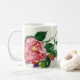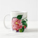 Una taza clásica con una camelia roja hermosa. De acuerdo con una pintura de la acuarela por Joan C. Thomson