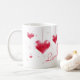 Ámele - taza del el día de San Valentín con los corazones purpurinoso rojos que cuelgan en secuencias sobre el fondo blanco. Este diseño es completamente adaptable. Usted puede cambiar el color de fondo, volver a clasificar según el tamaño o quitar los objetos… apenas haga clic en el "personalizar él" botón.