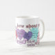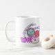 Un diseño de la taza hecho de una compilación de palabras y de imágenes transparentes encontró comúnmente alrededor de tumblr.