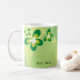 Esta taza bonita es perfecta para cualquier amante de la mariposa. Tiene un fondo verde con las porciones de mariposas verdes por todo ella. Cada lado tiene un espacio de encargo para un nombre o un mensaje.