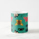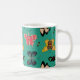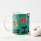 Mariposas imaginarias geométricas y pequeños insectos en un fondo verde. Colores vibrantes para aclarar su café de la mañana.