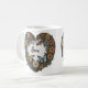 taza de café personalizada en forma de corazón con espacio para dos nombres, diseñada por HAMbyWhiteGlove aka HAMbyWG o HAMbWG