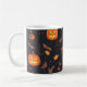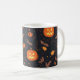 Es una taza adorable con imágenes de Halloween.