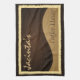 Olas de café y crema © Sunny Mars Designs. Moderna, moderna, moderna, moderna, moderna y fresca cafetería o cafetera, con una toalla de té americana MoJo hecha a mano, 100% tejida de algodón y un fresco ilustracion vectorial de fondo con un diseño abstracto ondulado marrón oscuro o chocolate y beige con líneas punteadas y discontinuas como olas y un marco de borde rodado de color crema y marrón alrededor. Personalizar al agregarle su propio nombre, nombre comercial o texto. Perfecto para los amantes del café y de las cafeterías.