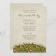 Invitación a una fiesta de cosecha temática de otoño con hojas y hierba.