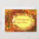 Las hojas de otoño en movimiento añaden un toque otoñal a esta invitación de la Casa Abierta de Acción de Gracias. Añade tu propia información al interior para guardar la escritura una y otra vez. Diseño original de Angela Castillo.